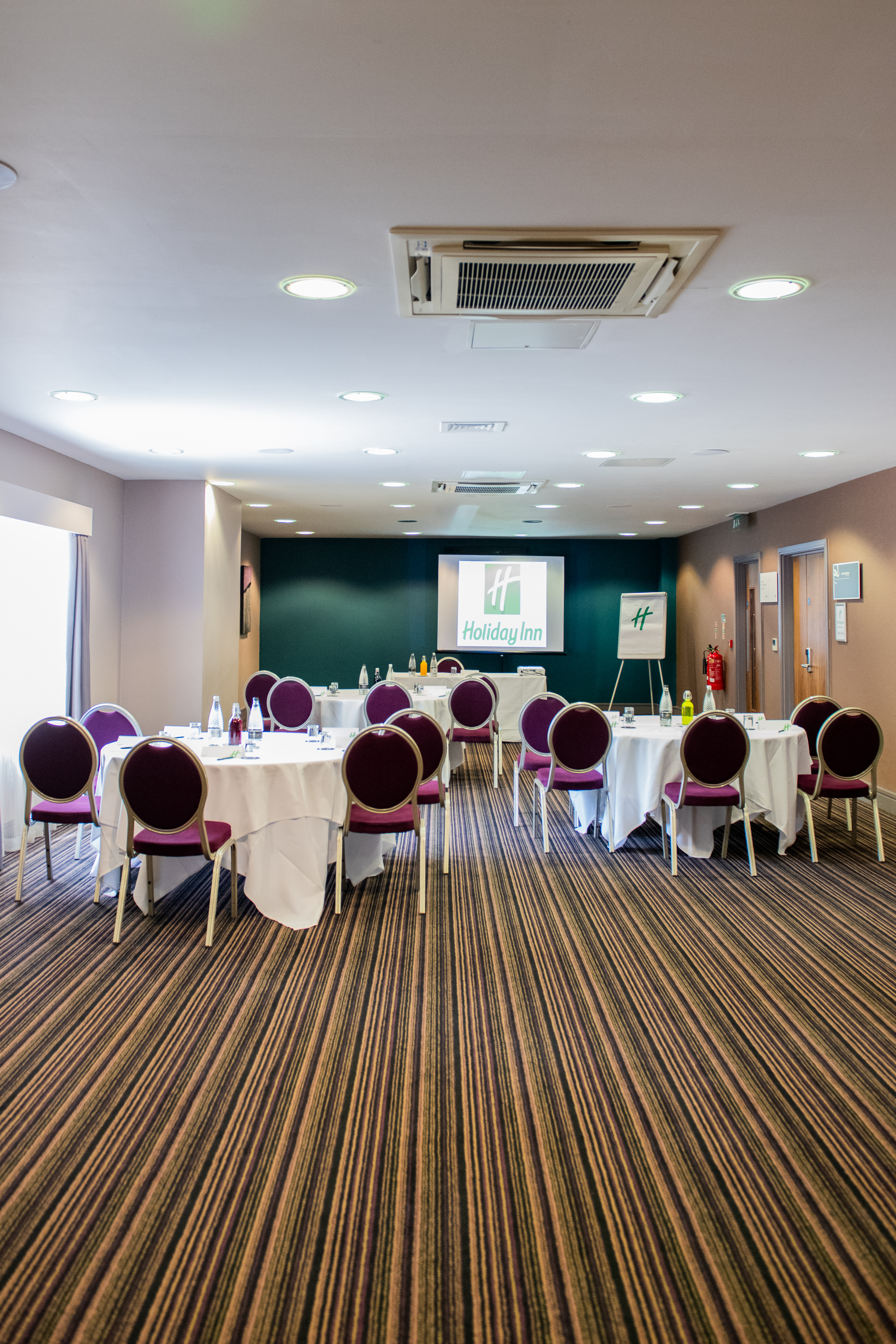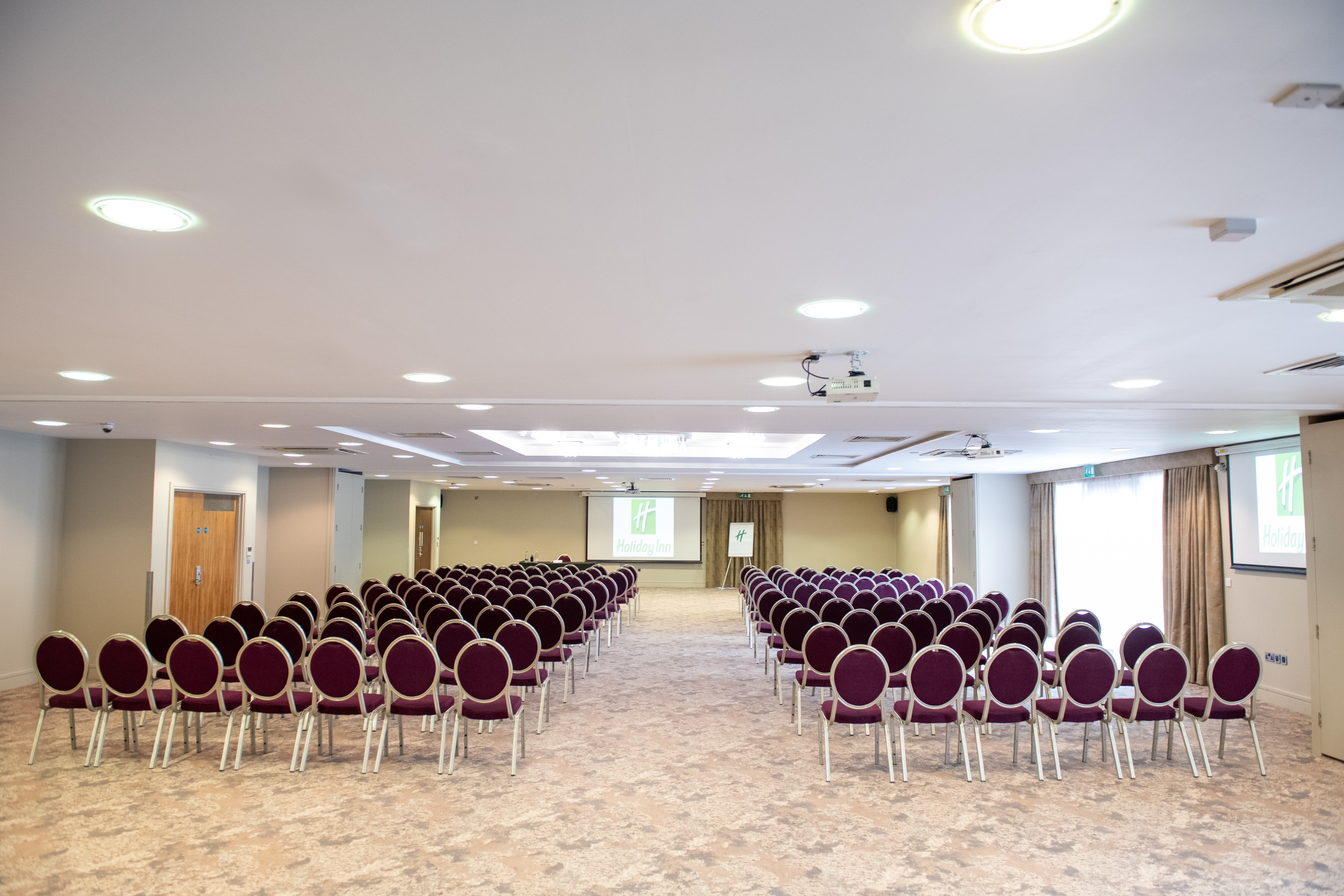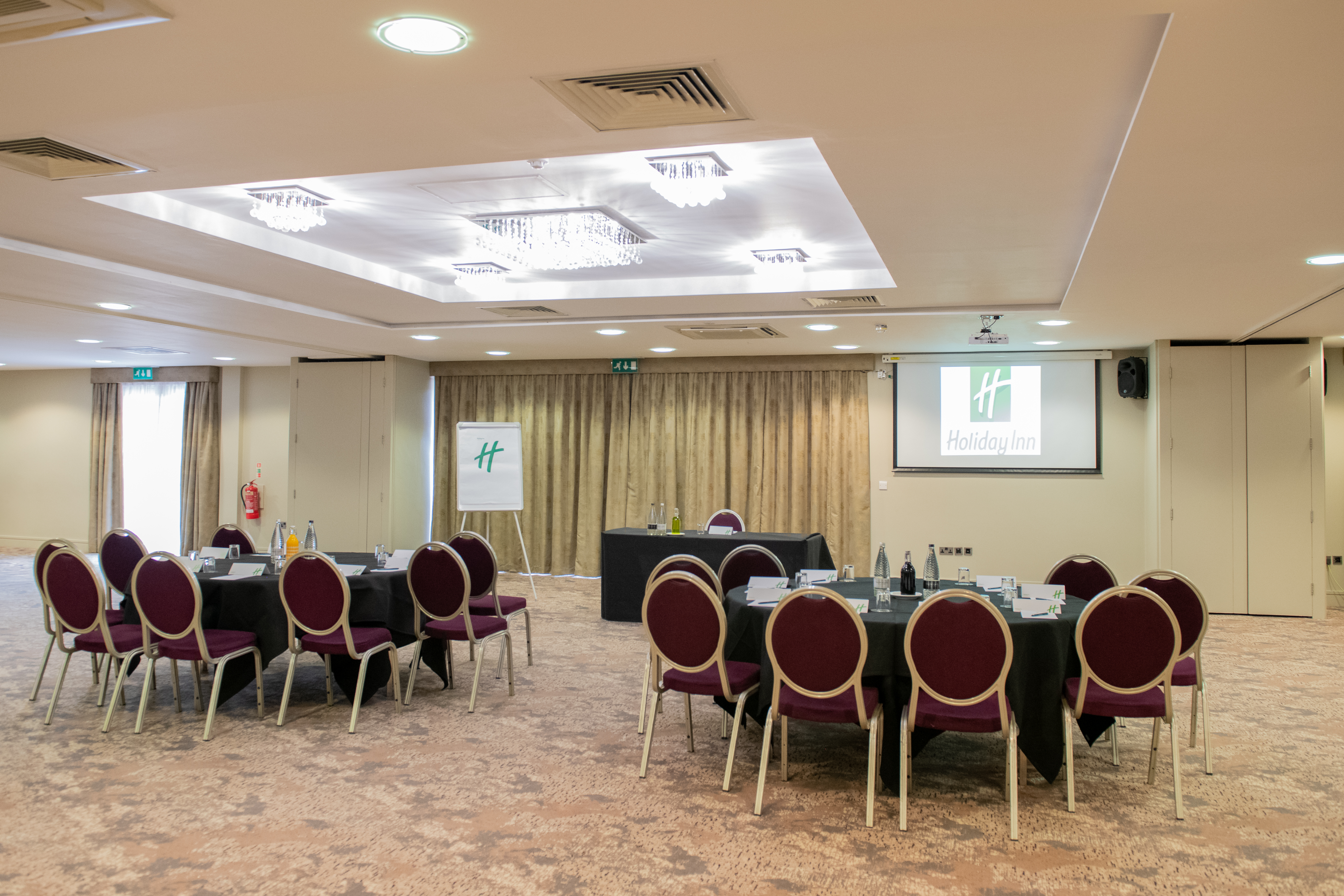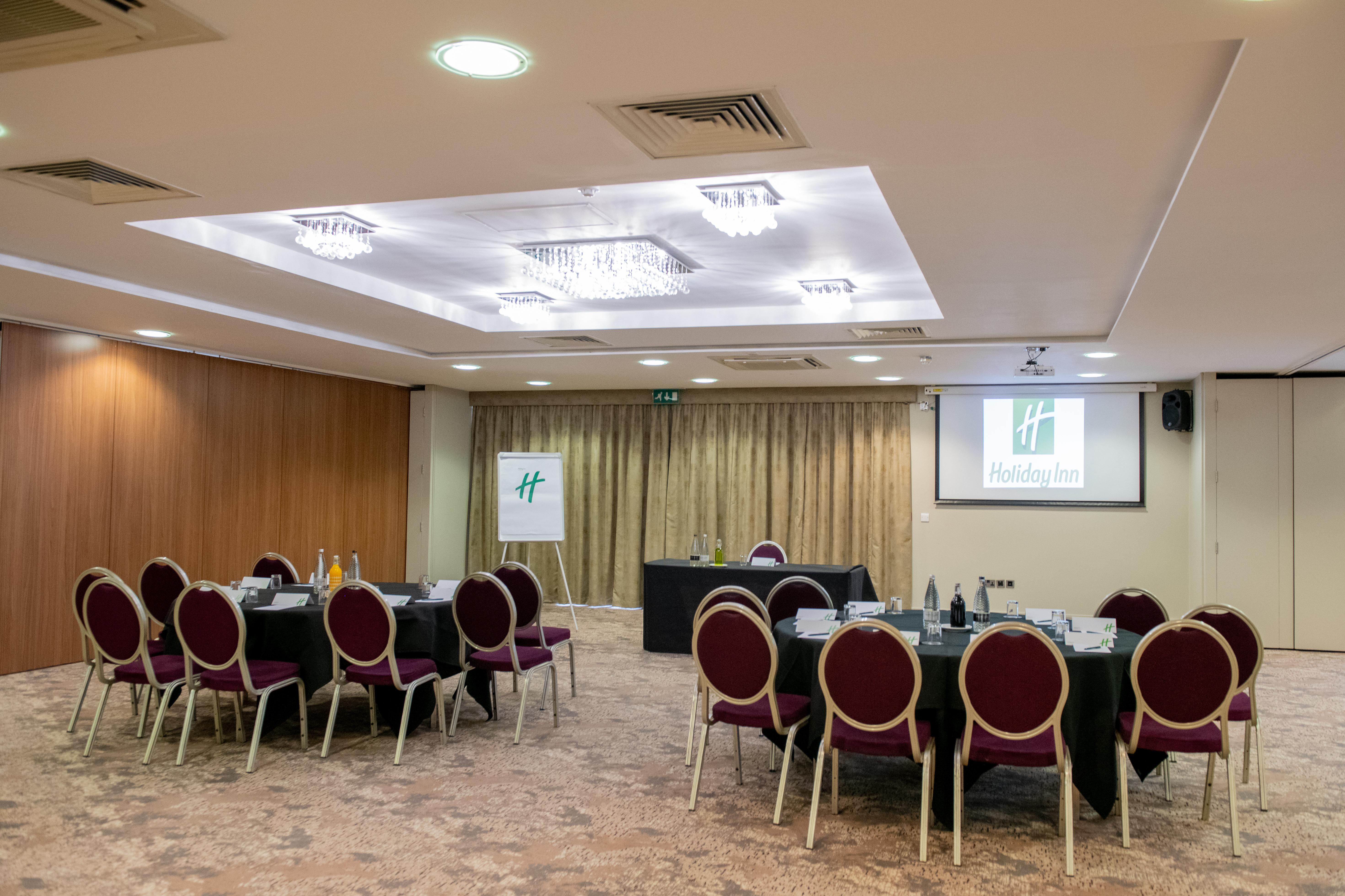 Holiday Inn conference room set up for a meeting Holiday Inn conference room set up for a meeting with a U-shaped table arrangement, chairs, and a screen displaying the Holiday Inn logo. Conference room setup at Holiday Inn with projection screen, table, chairs, and drinks Holiday Inn conference room with table setup, chairs, projector screen, and bar area Holiday Inn conference room setup with round tables and chairs Conference room at Holiday Inn set up for a meeting with round tables and chairs, a flipchart, and a projector screen. Holiday Inn conference room with round tables and chairs arranged for a meeting. Conference room with rows of empty chairs and a table at the front. Empty conference room with rows of red chairs and a table set up with bottles, a glass, and stationery. Conference room with rows of chairs facing a screen displaying the Holiday Inn logo Empty conference room with rows of chairs facing a projection screen displaying the Holiday Inn logo Holiday Inn conference room set up with round tables and chairs Conference room at Holiday Inn set up with round tables and chairs Holiday Inn conference room with round tables, chairs, and a presentation screen Clarion Boldon to Holiday Inn-03 Holiday Inn meeting room with round tables and chairs set up for a conference. Holiday Inn conference room with round tables and purple chairs arranged for a meeting. Holiday Inn conference room set up with round tables and chairs, facing a screen and flipchart Holiday Inn conference room with round tables and chairs, set up for a meeting with a presentation screen at the front. Conference room setup at Holiday Inn with round tables, purple chairs, and presentation screen. Modern conference room with black chairs and a flip chart Modern conference room with a large table, black chairs, bottled water, and a flip chart. Modern conference room with black chairs around a rectangular table Modern boardroom with black chairs and bottled water on a meeting table Modern conference room with black chairs around a rectangular table and a blue accent wall. Modern conference room with black chairs around a rectangular table, bottles of water and writing materials placed on the table, and a flipchart in front of a window. Modern conference room with a rectangular table, black chairs, and a presentation board. Conference room set up for a meeting at Holiday Inn with a large table, chairs, bottled water, and presentation screen. Conference room setup with a U-shaped table, bottled drinks, notepads, and red chairs. Conference room setup with beverages, notepads, and a flip chart with a green H logo.