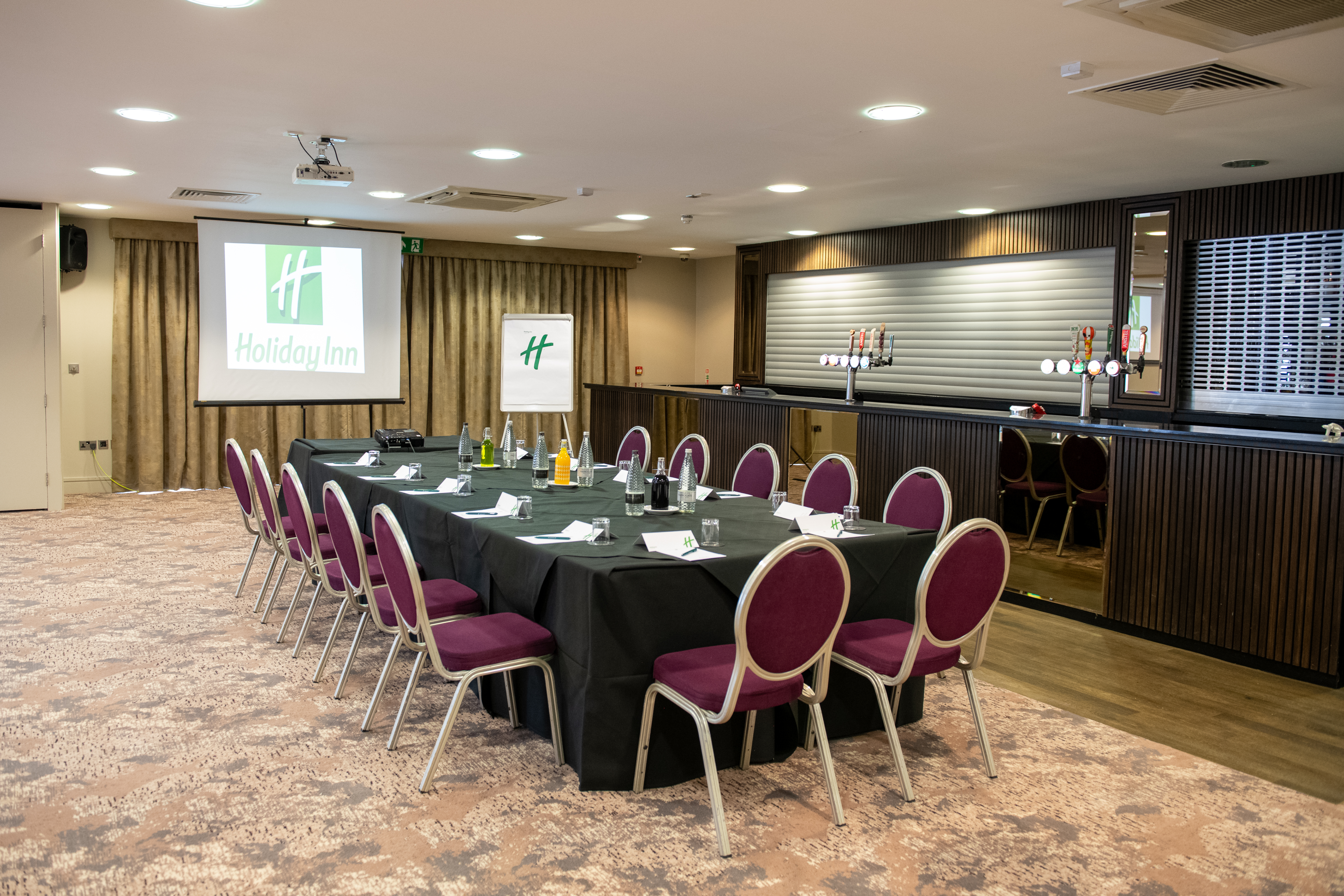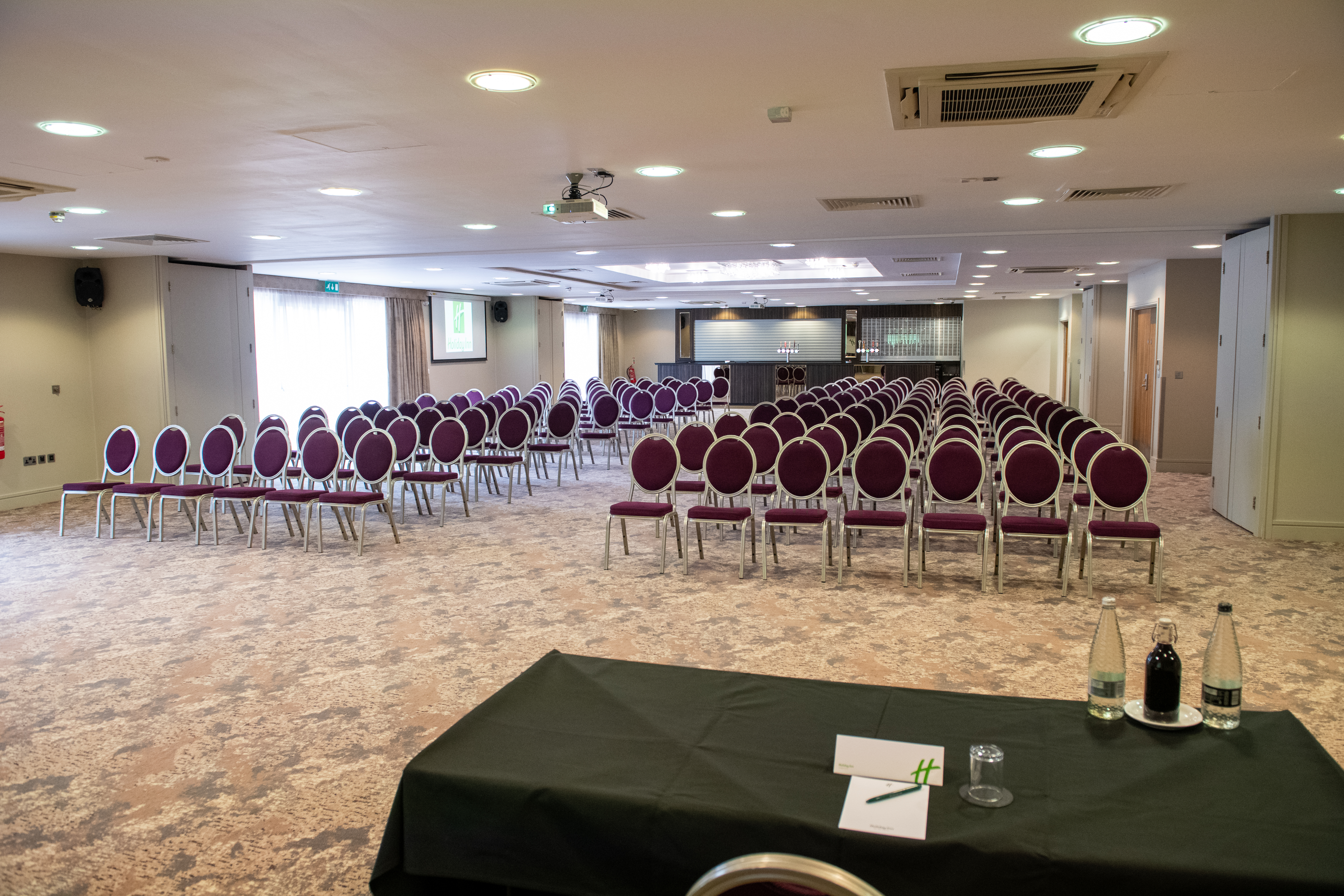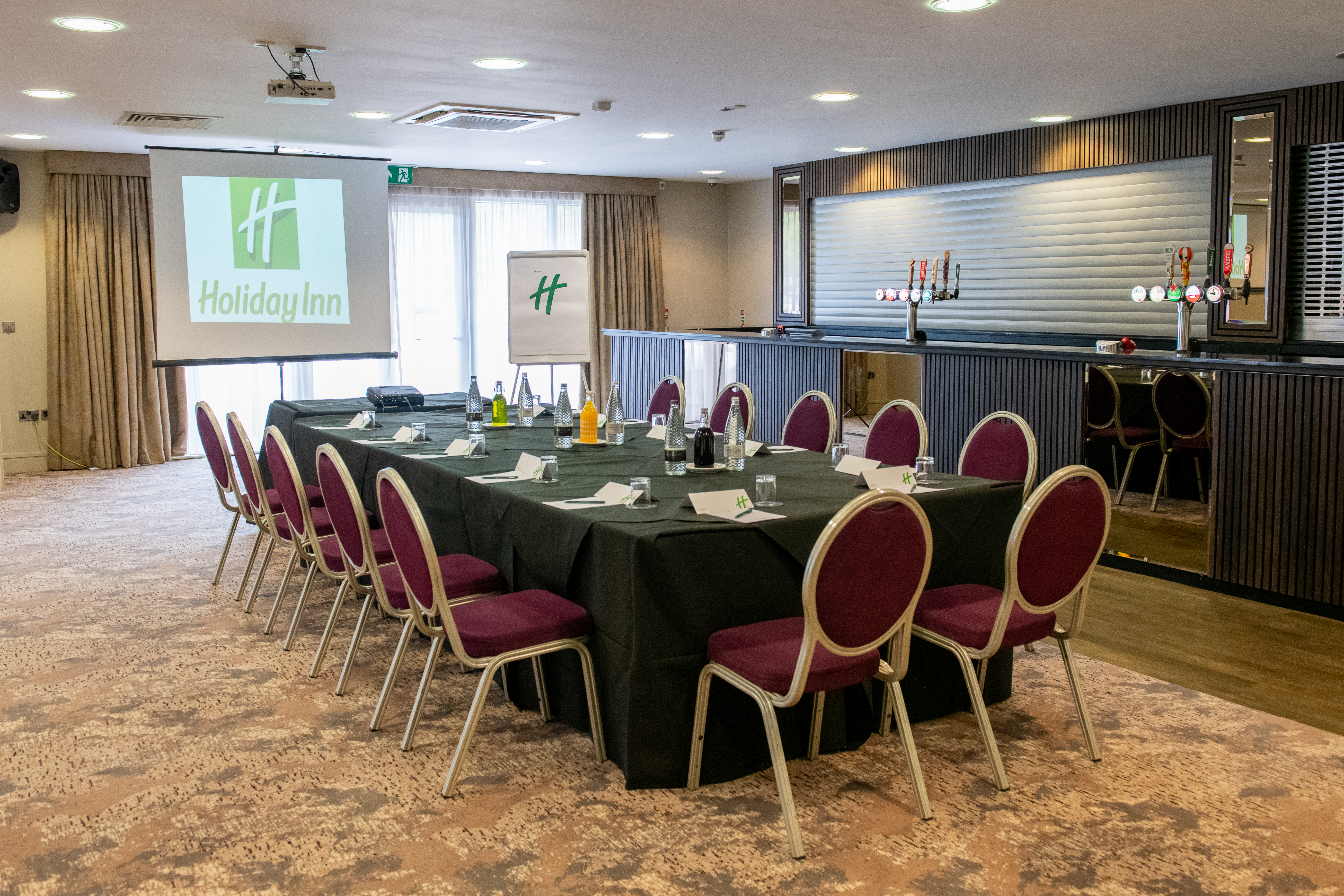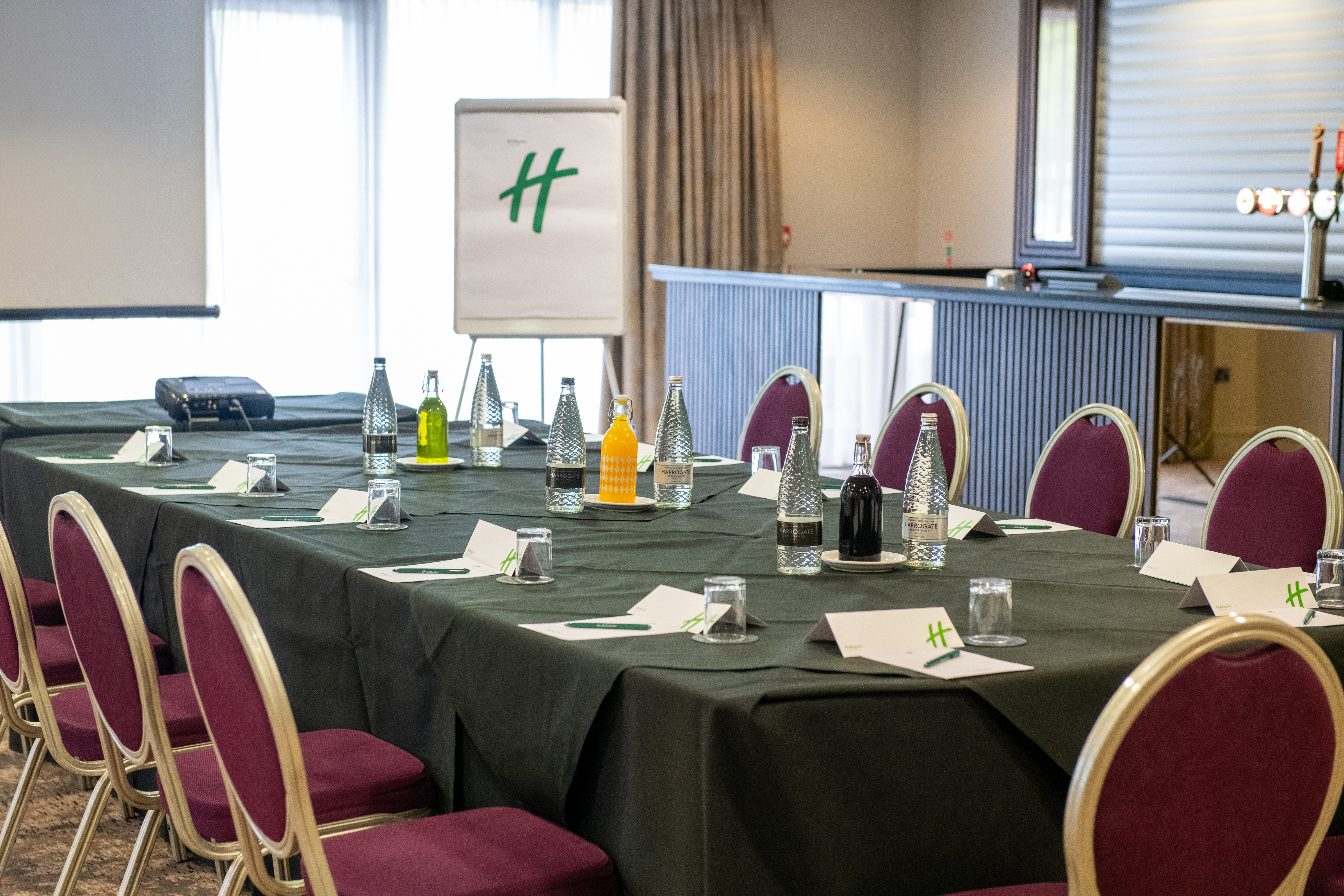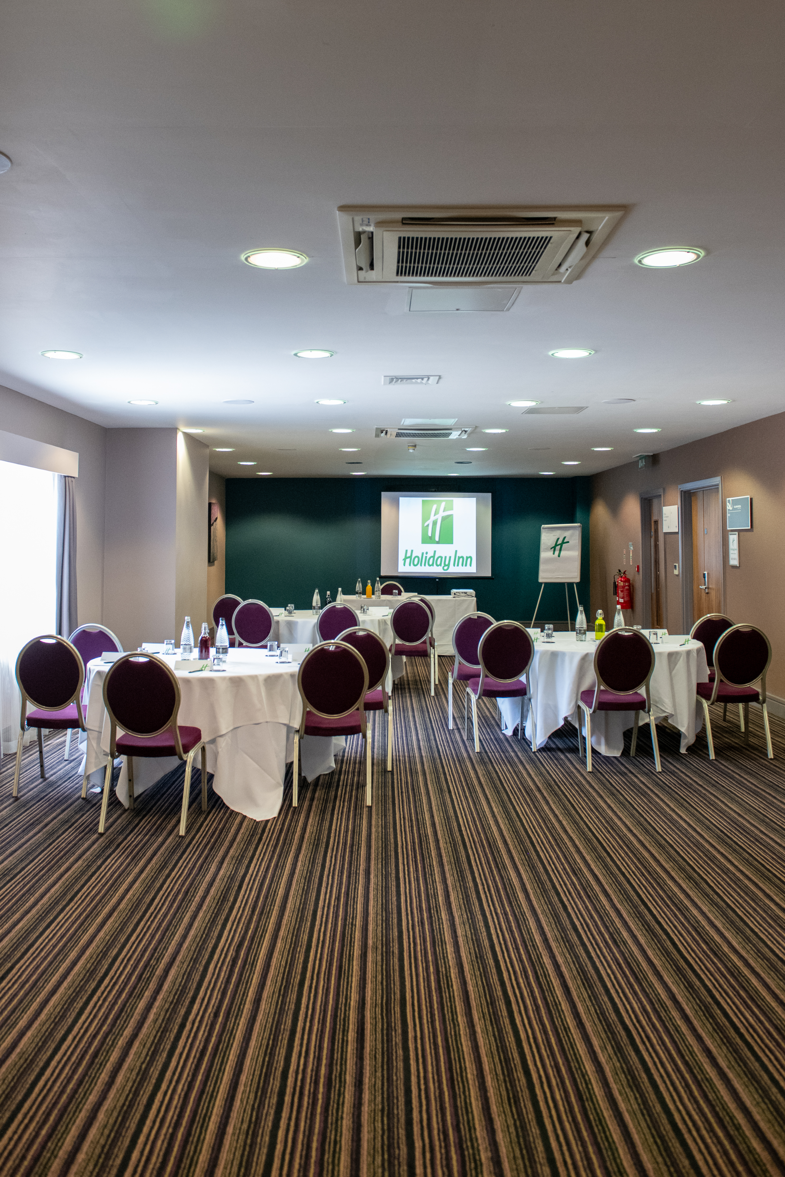 Holiday Inn conference room set up for a meeting Holiday Inn conference room set up for a meeting with a U-shaped table arrangement, chairs, and a screen displaying the Holiday Inn logo. Conference room setup at Holiday Inn with projection screen, table, chairs, and drinks Holiday Inn conference room with table setup, chairs, projector screen, and bar area Holiday Inn conference room setup with round tables and chairs Conference room at Holiday Inn set up for a meeting with round tables and chairs, a flipchart, and a projector screen. Holiday Inn conference room with round tables and chairs arranged for a meeting. Conference room with rows of empty chairs and a table at the front. Empty conference room with rows of red chairs and a table set up with bottles, a glass, and stationery. Conference room with rows of chairs facing a screen displaying the Holiday Inn logo Empty conference room with rows of chairs facing a projection screen displaying the Holiday Inn logo Holiday Inn conference room set up with round tables and chairs Conference room at Holiday Inn set up with round tables and chairs Holiday Inn conference room with round tables, chairs, and a presentation screen Clarion Boldon to Holiday Inn-03 Holiday Inn meeting room with round tables and chairs set up for a conference. Holiday Inn conference room with round tables and purple chairs arranged for a meeting. Holiday Inn conference room set up with round tables and chairs, facing a screen and flipchart Holiday Inn conference room with round tables and chairs, set up for a meeting with a presentation screen at the front. Conference room setup at Holiday Inn with round tables, purple chairs, and presentation screen. Modern conference room with black chairs and a flip chart Modern conference room with a large table, black chairs, bottled water, and a flip chart. Modern conference room with black chairs around a rectangular table Modern boardroom with black chairs and bottled water on a meeting table Modern conference room with black chairs around a rectangular table and a blue accent wall. Modern conference room with black chairs around a rectangular table, bottles of water and writing materials placed on the table, and a flipchart in front of a window. Modern conference room with a rectangular table, black chairs, and a presentation board. Conference room set up for a meeting at Holiday Inn with a large table, chairs, bottled water, and presentation screen. Conference room setup with a U-shaped table, bottled drinks, notepads, and red chairs. Conference room setup with beverages, notepads, and a flip chart with a green H logo.