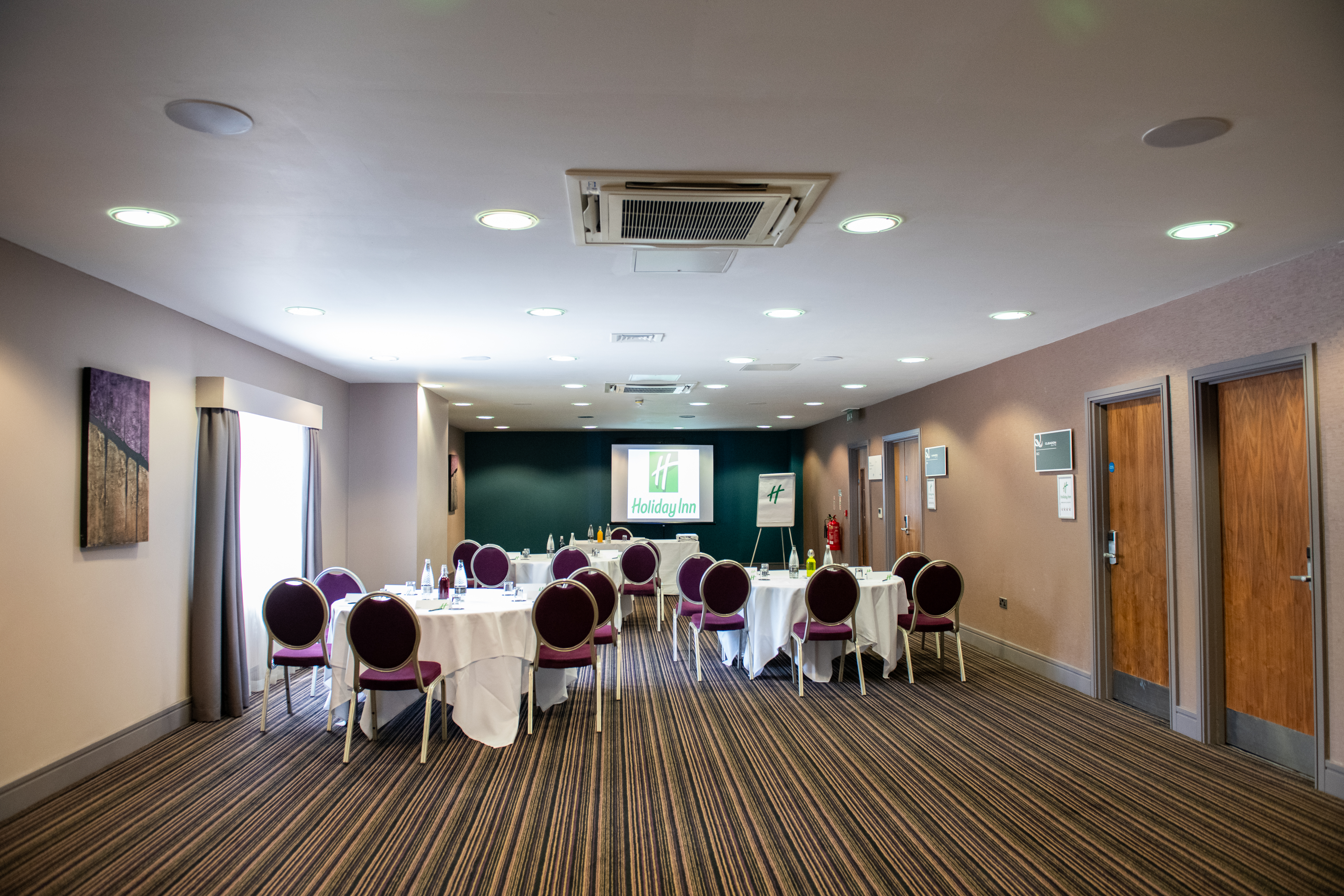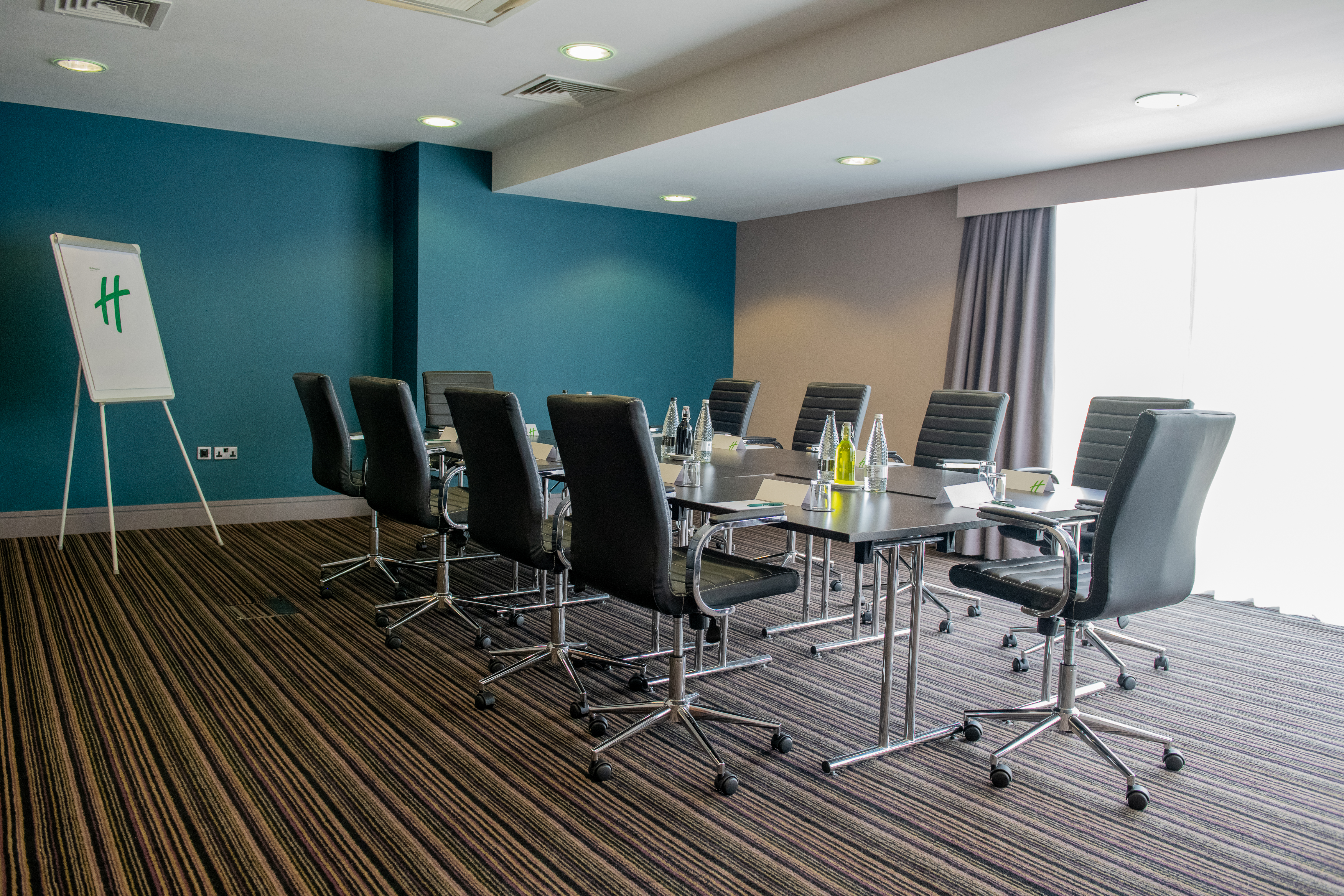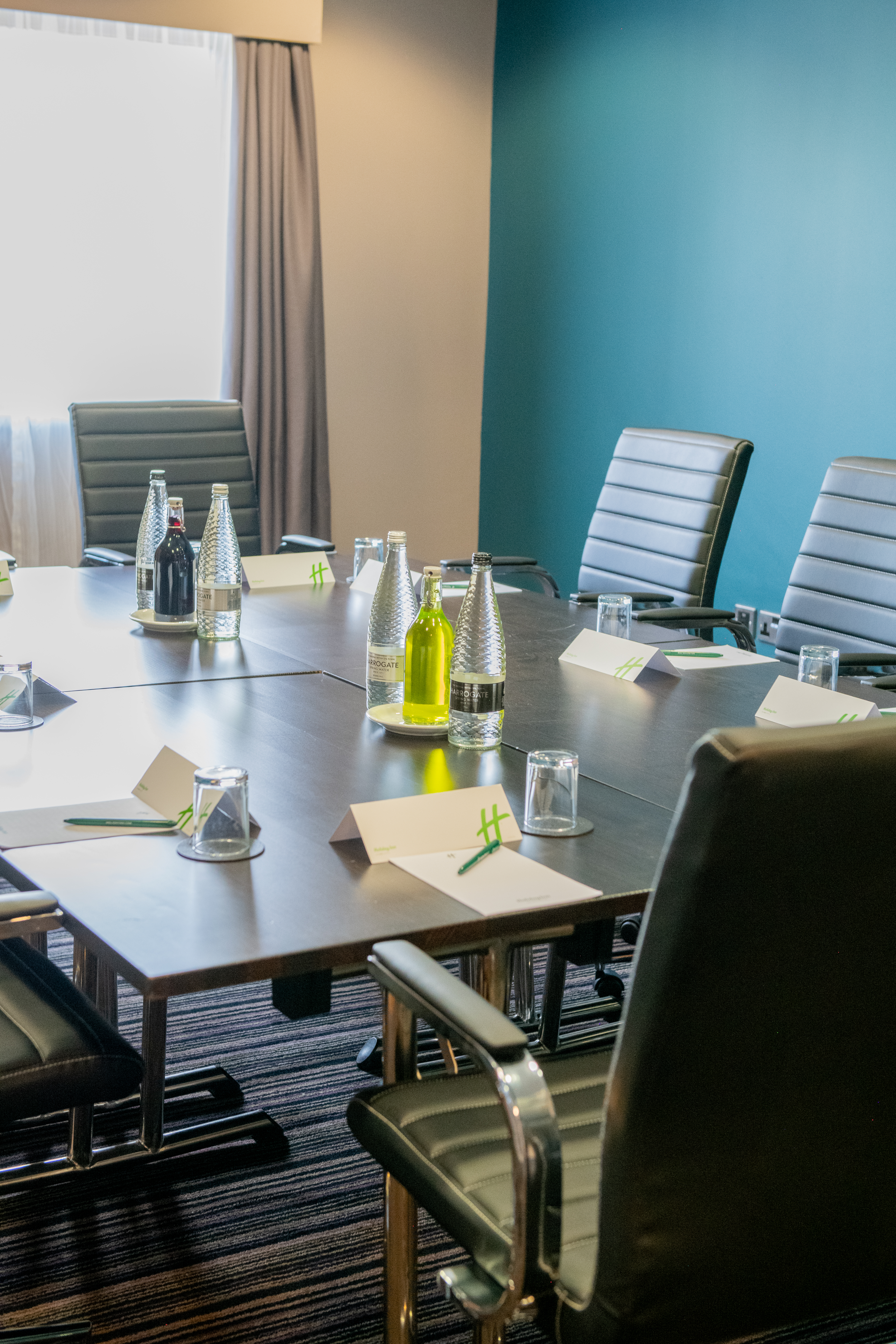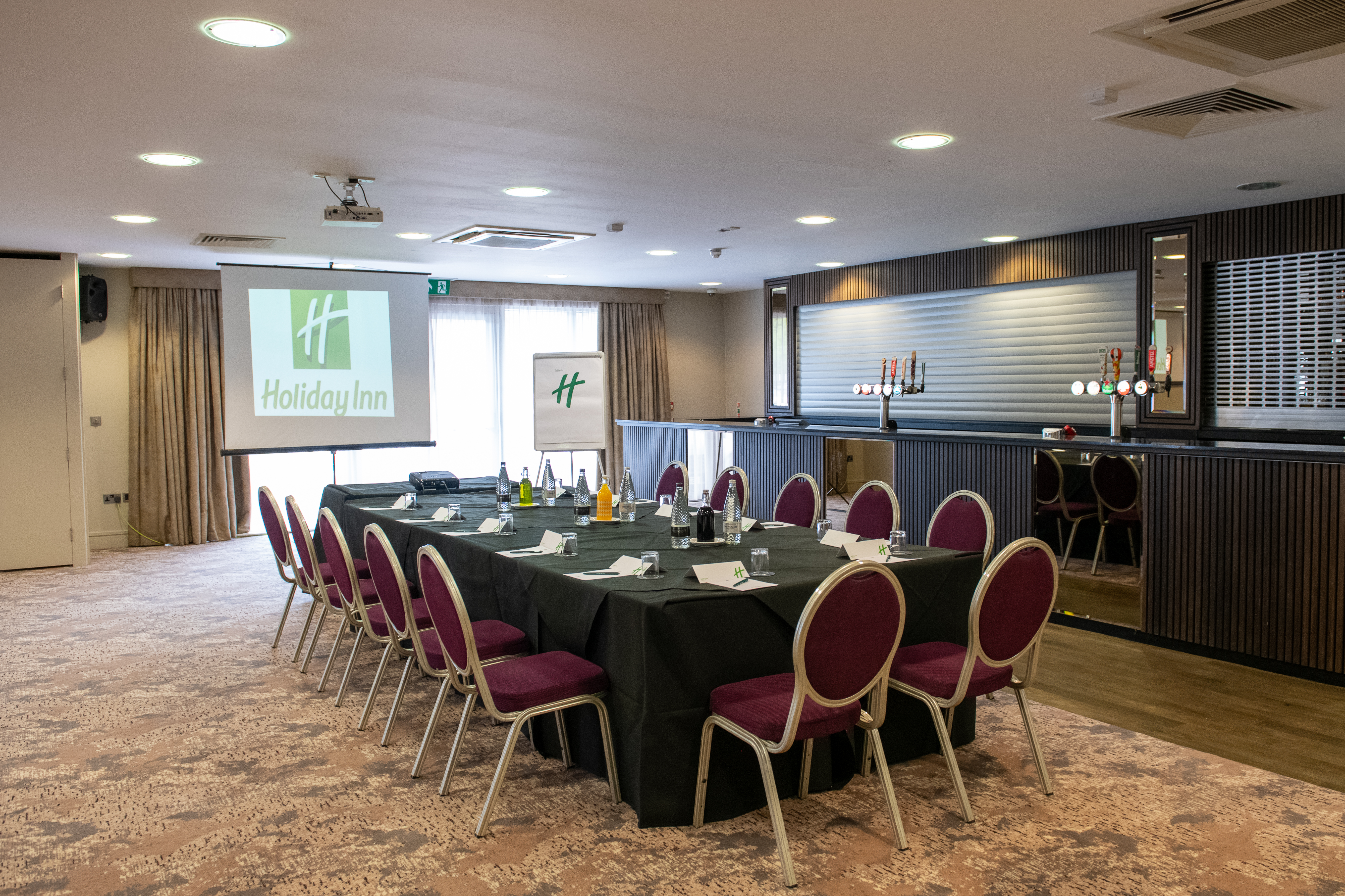 Holiday Inn conference room set up for a meeting Holiday Inn conference room set up for a meeting with a U-shaped table arrangement, chairs, and a screen displaying the Holiday Inn logo. Conference room setup at Holiday Inn with projection screen, table, chairs, and drinks Holiday Inn conference room with table setup, chairs, projector screen, and bar area Holiday Inn conference room setup with round tables and chairs Conference room at Holiday Inn set up for a meeting with round tables and chairs, a flipchart, and a projector screen. Holiday Inn conference room with round tables and chairs arranged for a meeting. Conference room with rows of empty chairs and a table at the front. Empty conference room with rows of red chairs and a table set up with bottles, a glass, and stationery. Conference room with rows of chairs facing a screen displaying the Holiday Inn logo Empty conference room with rows of chairs facing a projection screen displaying the Holiday Inn logo Holiday Inn conference room set up with round tables and chairs Conference room at Holiday Inn set up with round tables and chairs Holiday Inn conference room with round tables, chairs, and a presentation screen Clarion Boldon to Holiday Inn-03 Holiday Inn meeting room with round tables and chairs set up for a conference. Holiday Inn conference room with round tables and purple chairs arranged for a meeting. Holiday Inn conference room set up with round tables and chairs, facing a screen and flipchart Holiday Inn conference room with round tables and chairs, set up for a meeting with a presentation screen at the front. Conference room setup at Holiday Inn with round tables, purple chairs, and presentation screen. Modern conference room with black chairs and a flip chart Modern conference room with a large table, black chairs, bottled water, and a flip chart. Modern conference room with black chairs around a rectangular table Modern boardroom with black chairs and bottled water on a meeting table Modern conference room with black chairs around a rectangular table and a blue accent wall. Modern conference room with black chairs around a rectangular table, bottles of water and writing materials placed on the table, and a flipchart in front of a window. Modern conference room with a rectangular table, black chairs, and a presentation board. Conference room set up for a meeting at Holiday Inn with a large table, chairs, bottled water, and presentation screen. Conference room setup with a U-shaped table, bottled drinks, notepads, and red chairs. Conference room setup with beverages, notepads, and a flip chart with a green H logo.