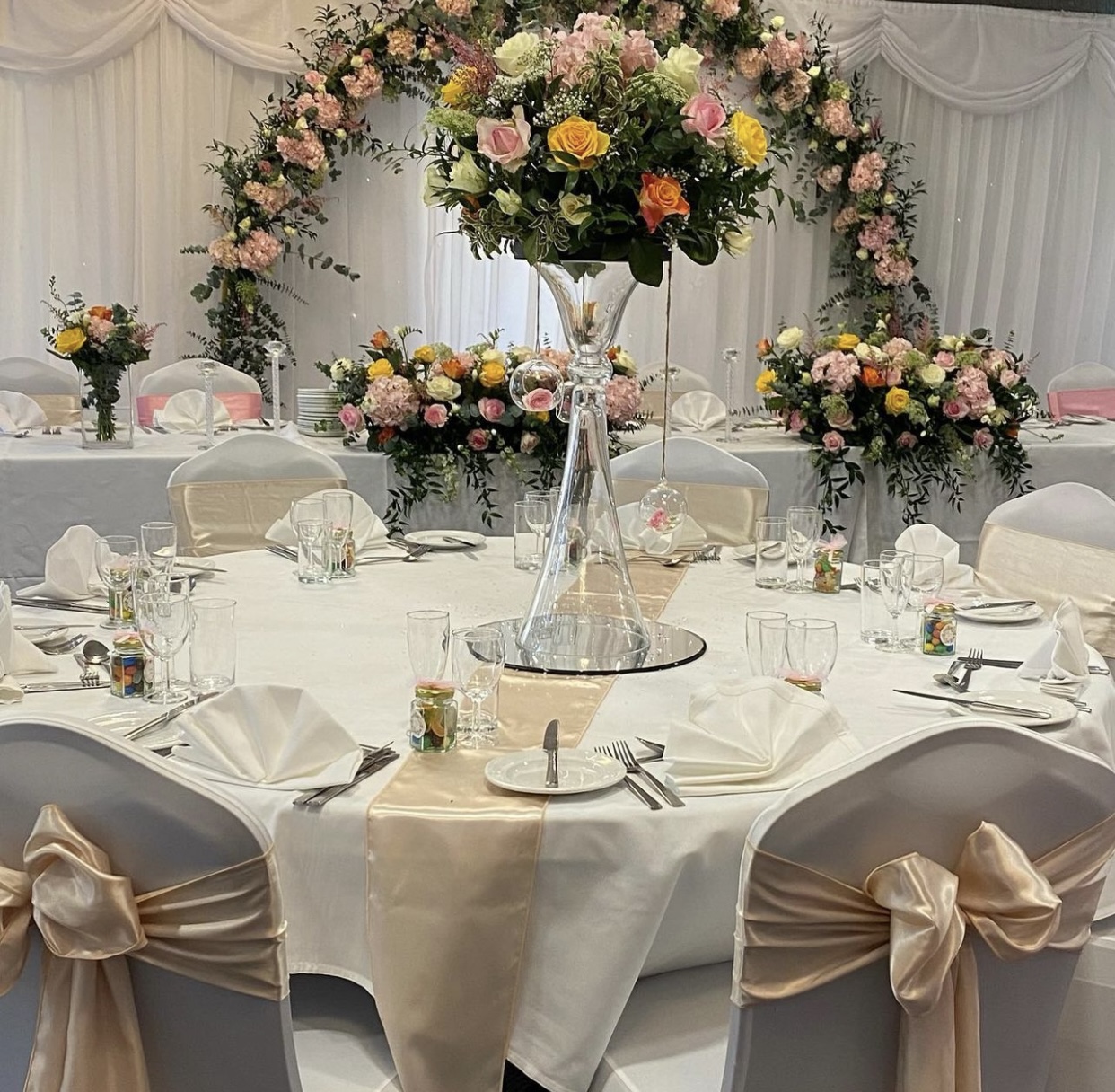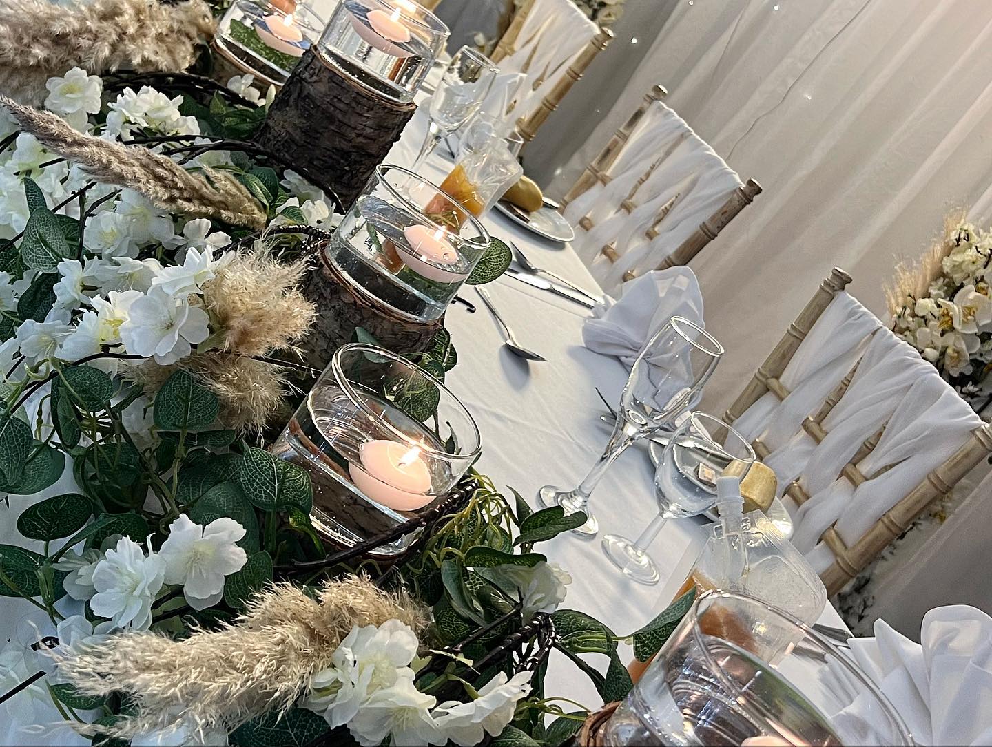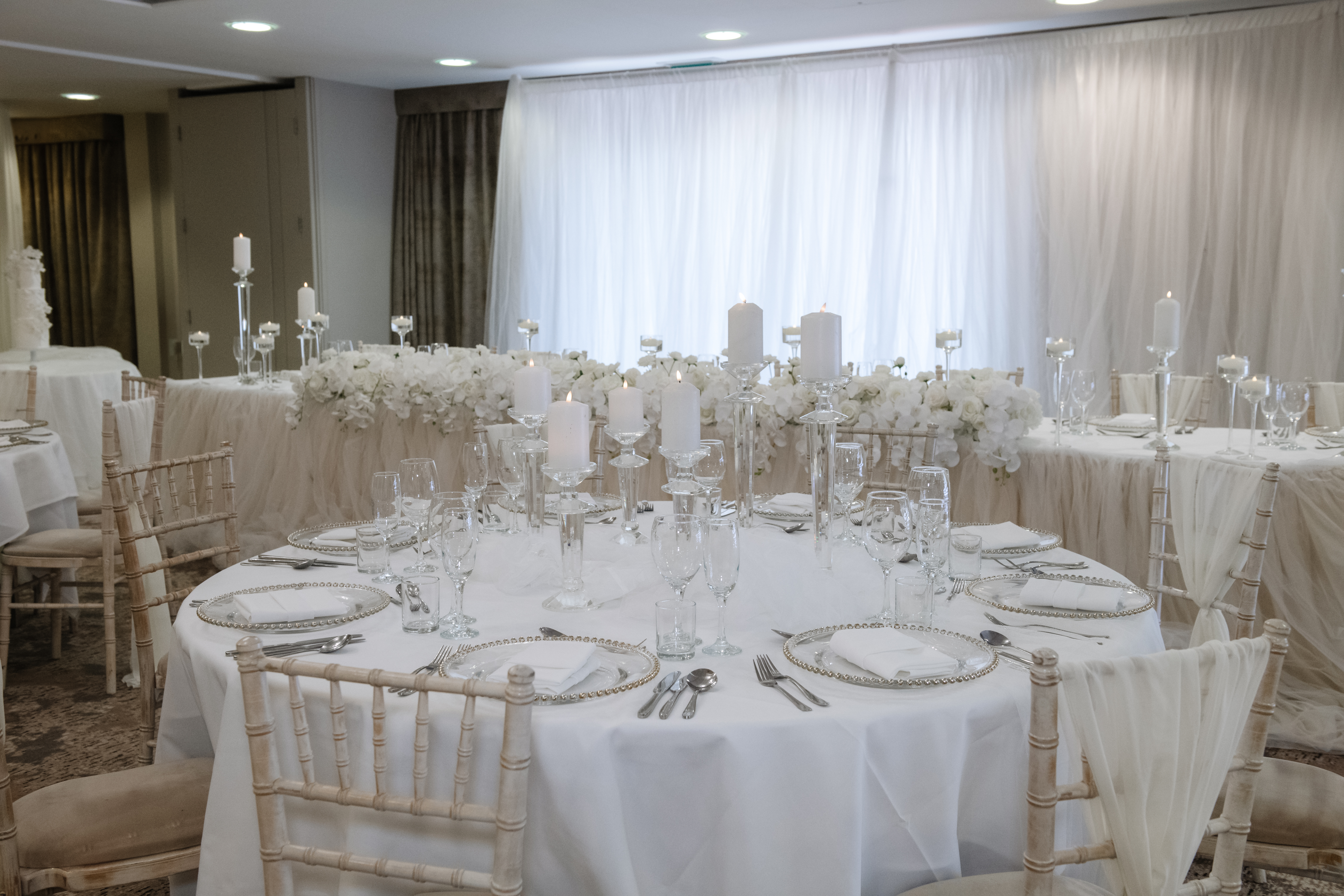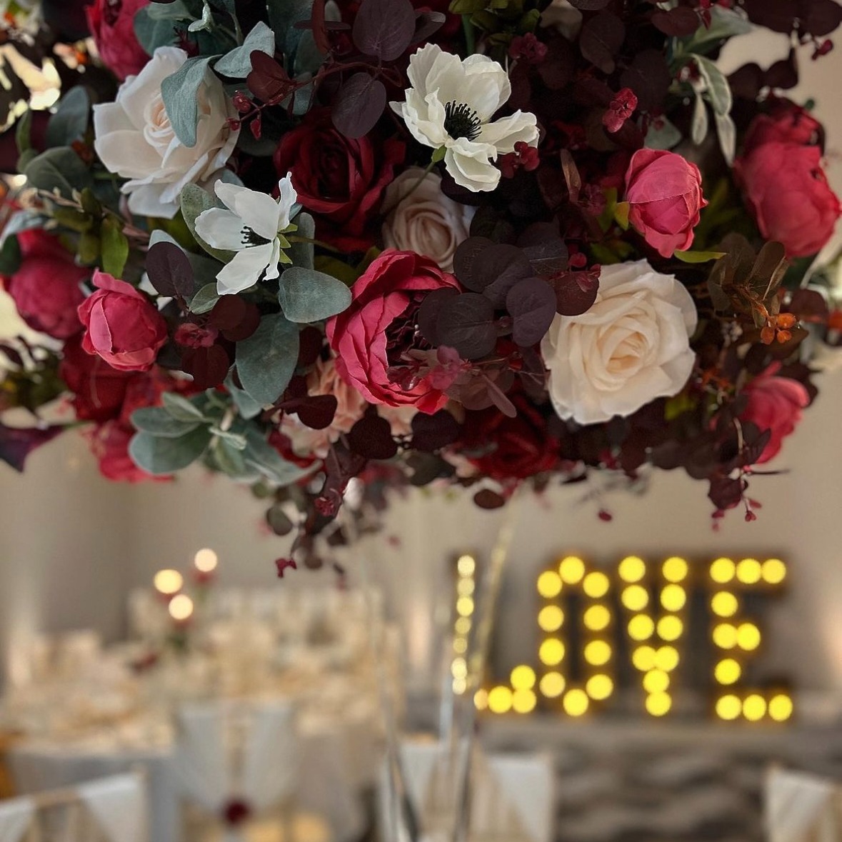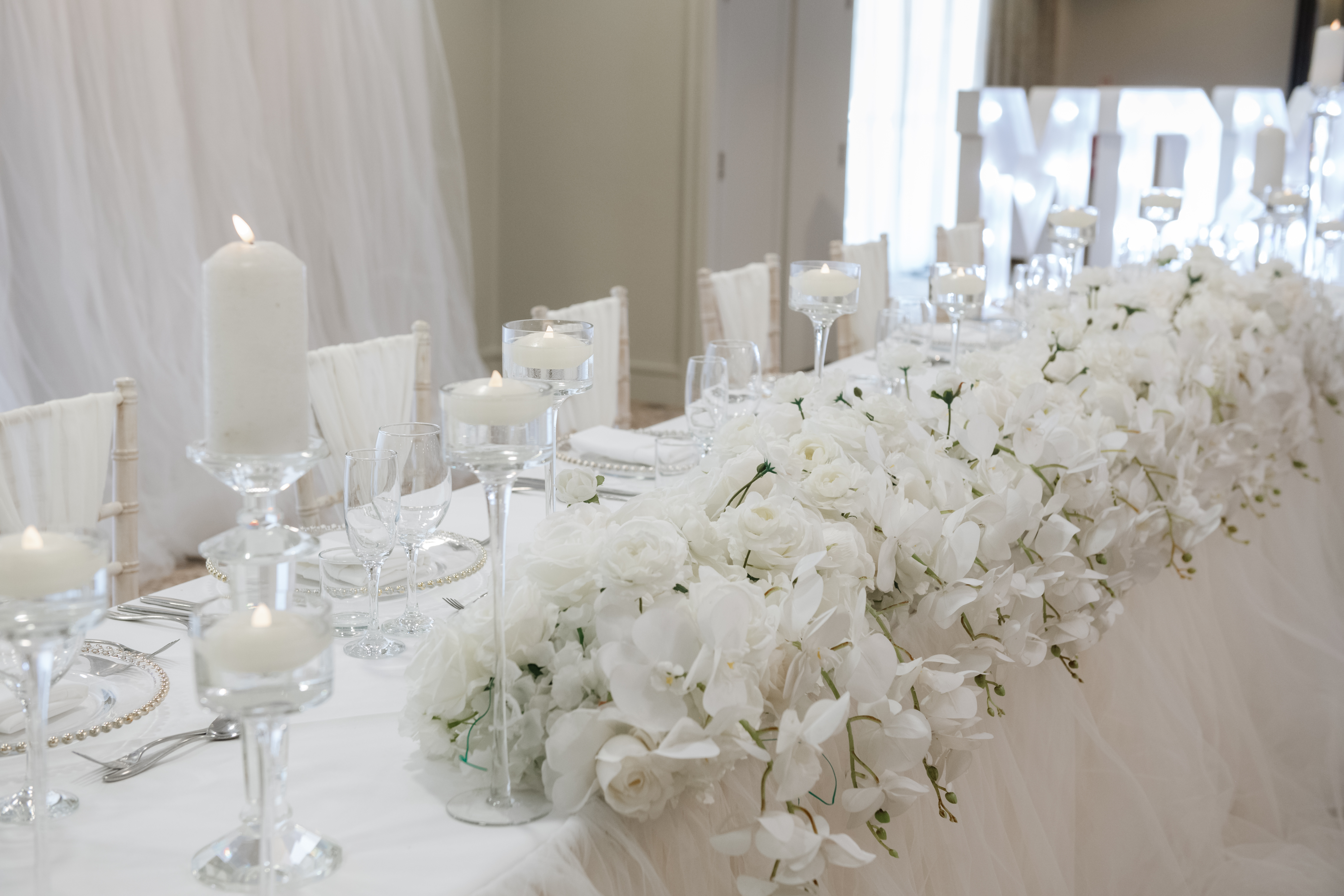Elegant wedding reception hall with round tables, white floral centerpieces, and ivory Chiavari chairs draped in fabric. Elegant wedding reception setup with white floral centerpieces and white draped chairs Elegant wedding reception decorated in white with floral centerpieces and candles Elegant wedding reception setup with white flowers, candles, round tables and large illuminated letters in the background. Tall white wedding cake with floral decorations and elegant piping Elegant wedding reception table decorated with white flowers, candles, and crystal glassware. Elegant wedding reception table with white roses, glassware, and rustic chairs draped in white fabric. Elegant wedding or event table setting with white floral arrangements and candles Elegant wedding reception table with white decorations and candles Elegant wedding reception setup with white floral arrangements and candles on round tables. Elegant white wedding reception table setup with floral arrangements and candles. Elegant wedding reception table decorated with white flowers and candles Elegant wedding reception setup with white floral arrangements and candles Elegant wedding reception hall with white floral centerpieces and draped chairs Elegant wedding reception table setup with white linens, floral arrangements, and candles. Elegant table setting with glass plates, silverware, and glassware on a white tablecloth Elegant wedding table decorated with white roses and orchids, with floating candles. Elegant table setting with glassware, cutlery, and a decorative plate Elegant wedding table setup with white and silver decor and candles. Elegant wedding table decorated with white flowers and candles Elegant wedding reception table setting with white flowers and candles. Elegant wedding table adorned with white flowers and floating candles Elegant wedding reception table with white floral arrangements, candles, and a tiered white wedding cake in the background. Elegant wedding table decorated with white flowers, candles, and tulle Elegant wedding ceremony setup with white floral arch and draped fabric. Clarion Hotel Boldon  28 Elegant indoor wedding venue decorated with white flowers and draped fabric. Luxurious wedding altar decorated with white flowers and candles Elegant wedding ceremony setup with white floral arrangements and candles Clarion Hotel Boldon  34 Elegant white indoor wedding ceremony setup with floral decorations and chairs Luxurious wedding altar decorated with white flowers and draped fabric Elegant indoor wedding ceremony setup with white flowers and draped fabric Elegant wedding cake display surrounded by white flowers and draped fabric backdrop Lit 'MR & MRS' sign next to a bar at an event venue Elegant wedding table decorated with white flowers and floating candles Conference room setup at Holiday Inn with round tables, purple chairs, and presentation screen. Bouquet of red, white, and pink flowers with a blurred 'LOVE' light sign in the background A wedding backdrop with a neon sign that says 'it was always you' beneath a floral arch. Romantic floral wedding arch with candles and a neon sign reading 'It was always you' Neon sign reading 'It was always you' surrounded by pink and white flowers. Close-up of a floral arrangement with pink and white roses at a wedding or romantic event. Bride and groom holding hands in front of a 'Happily Ever After' neon sign and floral arch Bride and groom sharing a kiss at their wedding reception, surrounded by flowers and candles. White roses in a glass vase with blurred illuminated number 40 in the background Floral arch with neon sign that says 'It's a love story' Elegant table setting with candles, flowers, and glassware arranged on a white tablecloth Elegant floral arrangement with white roses and hydrangeas in a glass vase Elegant wedding reception table setup with floral arrangements and arch Elegant wedding table centerpiece with a large artificial white cherry blossom tree surrounded by table settings. Wedding or party table setting with floral arch and neon sign reading 'Til Death Do Us Party' Heart-shaped arrangement of cocktail glasses with fruit and mint, surrounded by flower petals Elegant table centerpiece with floating candles, purple flowers, and glass vases at a formal event. Tall glass vases with floating candles and white flowers as elegant table centerpieces Close-up of a decorative candle in a glass votive holder next to a glass jar. Rows of chairs with red bows and illuminated wooden letters in the background at an event. Elegant wedding table setting with floral centerpiece, candles, and sparkling tablecloth. Elegant three-tiered dark blue cake with pink flowers, set in front of a heart-shaped wooden backdrop with lights. Elegant wedding cake on round table surrounded by flowers and draped fabric Wedding cake displayed under a floral arch with white flowers and draped fabric backdrop Elegant wedding cake display with white floral arch and draped backdrop Elegant white wedding cake surrounded by white floral arrangements and draped curtains Ornate white wedding cake on a table surrounded by white flowers and elegant drapery